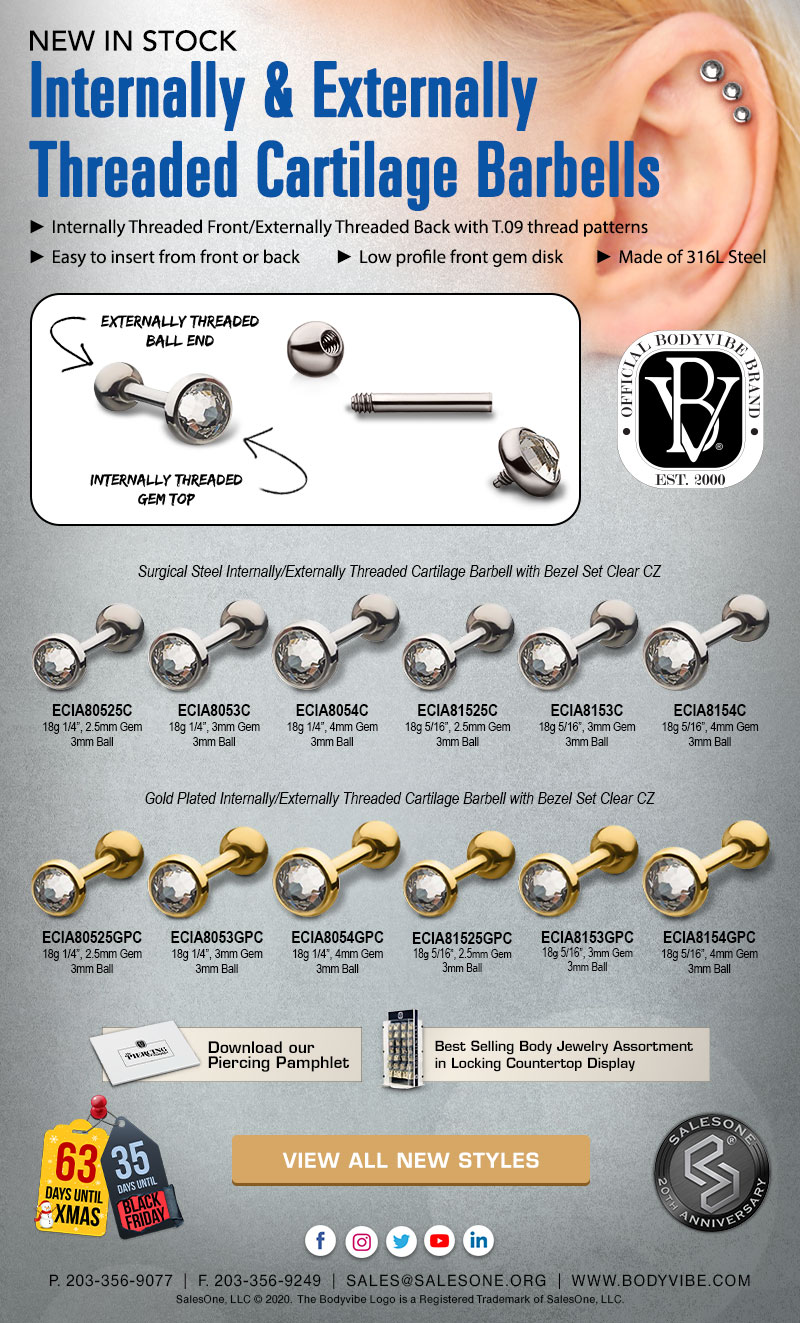 New and Ready to Ship! Internally & Externally Threaded Cartilage Barbells. October 22, 2020October 26, 2020 BodyVibe Body Jewelry