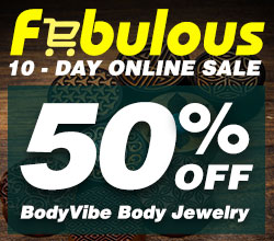 Have a FEBulous FEBruary! 50% OFF over 2700 selected styles. Web orders only. January 30, 2020 BodyVibe Body Jewelry